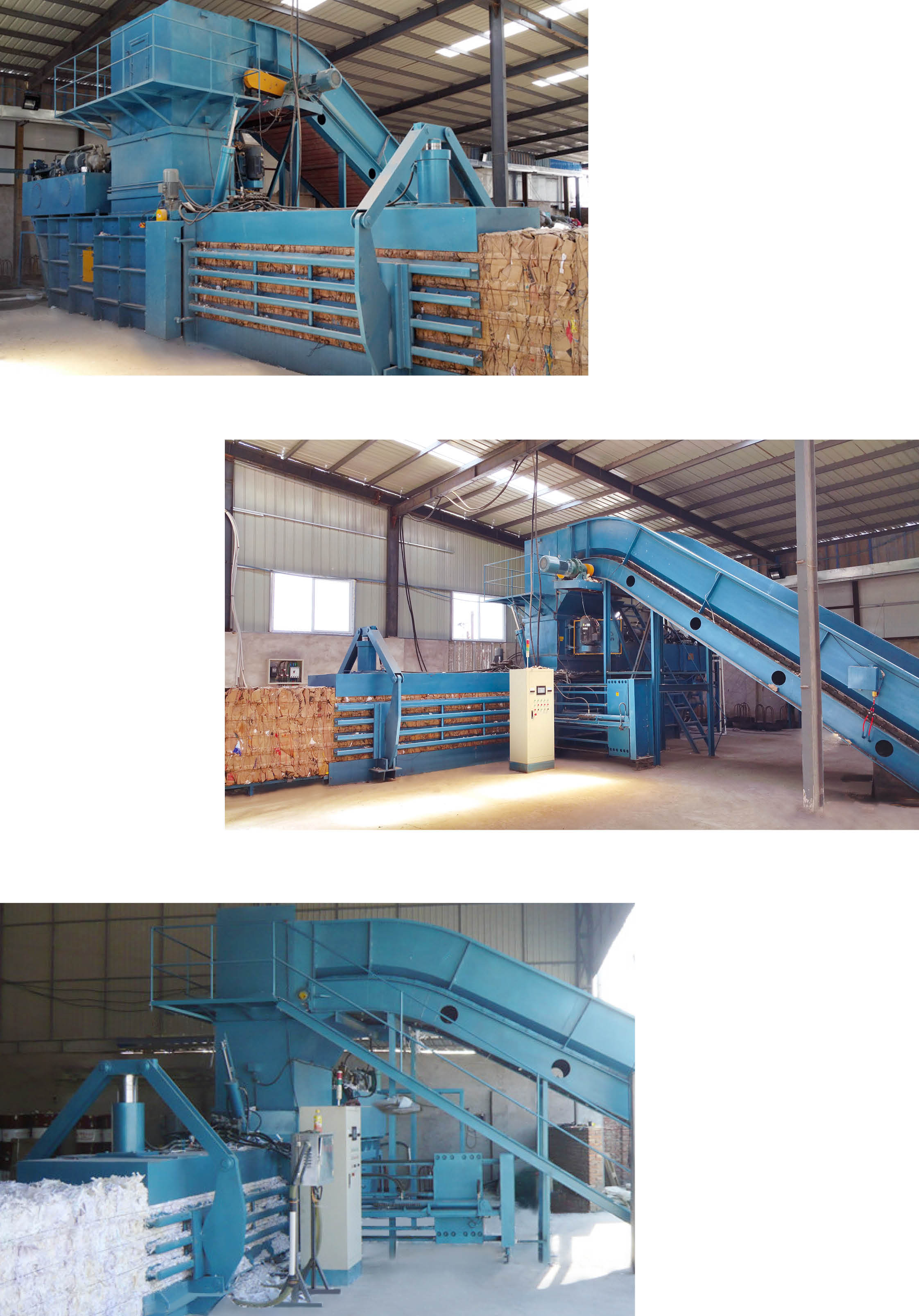 本機用于廢紙回收公司,大型紙箱廠生產(chǎn)線下角料配套打包,進(jìn)口廢紙分選后打包,廢塑料、秸桿、牧草等非金屬打包。